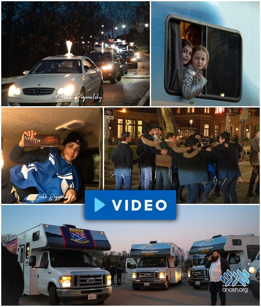 Dozens of cars took to the streets of Pittsburgh, Pennsylvania for a grand menorah parade led by seven mitzva tanks, spreading light across the city.