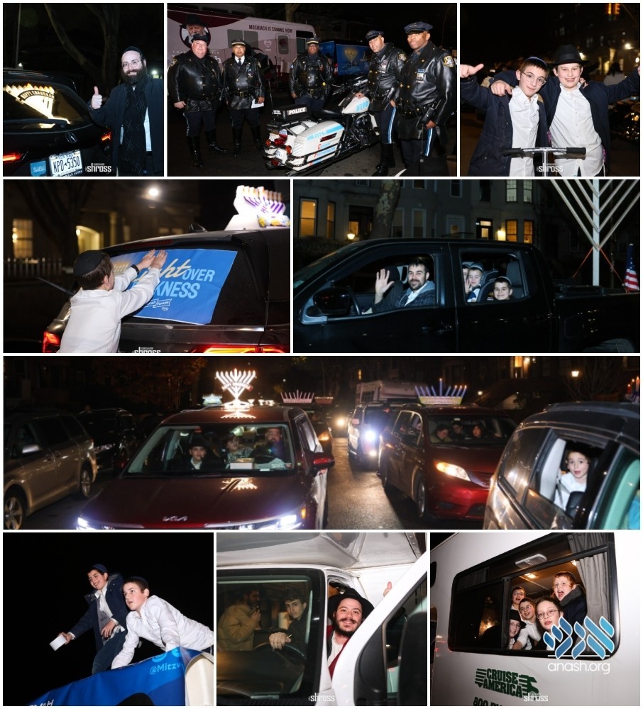 Over 300 cars, joined by over a dozen Mitzvah Tanks, geared up with car top menorahs, mivtzoim kits and lively music to spread the light of Chanukah on the streets of NYC at the annual Menorah Parade.