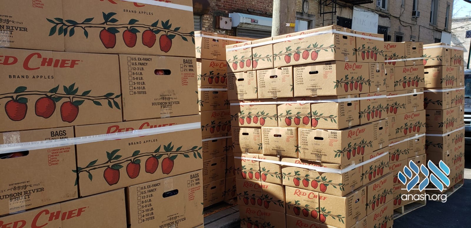 The Chamah organization has arranged for hundreds of cases of red apples available for immediate pick-up for all Crown Heights families.