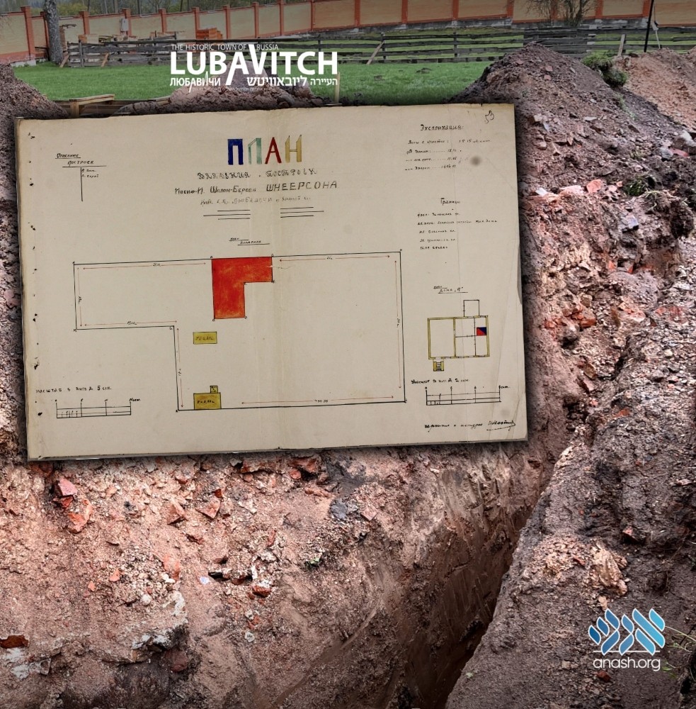 Just recently, over 100 years later, the construction plans were discovered, confirming the exact location of the beis choma. Thanks to the discovered plan, fragments of the foundations of these buildings were found buried underground in the chotzer, which is once again in the hands of Chabad chassidim.