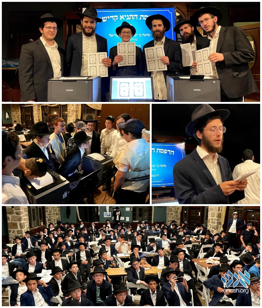 Campers of Gan Yisroel Montreal’s Section C gathered to print a special edition of the Tanya, the first for the city of Burlingham, NY.