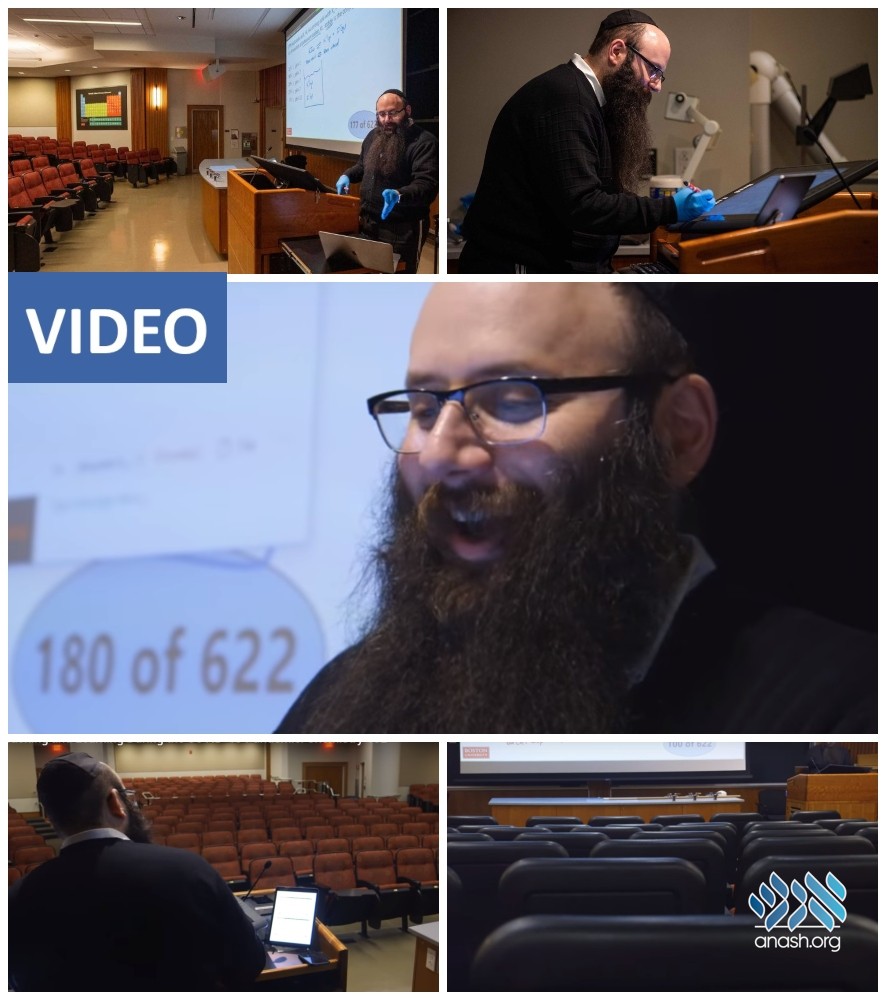 Dr. Abrams now shows up at the empty classroom’s podium, this time facing a webcam, continuing to make a kiddush Hashem in his albeit unusual profession.