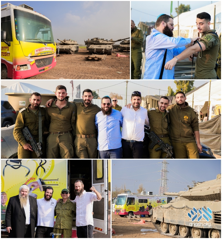 From there he joined the Chabad Mitzvah Tanks to visit the soldiers and offer them the chance to don tefillin. Accompanying them was Rabbi Moshe Assman of Ukraine who came from the Nahal Oz area and Moshav Bari to encourage the IDF soldiers with words of Torah.