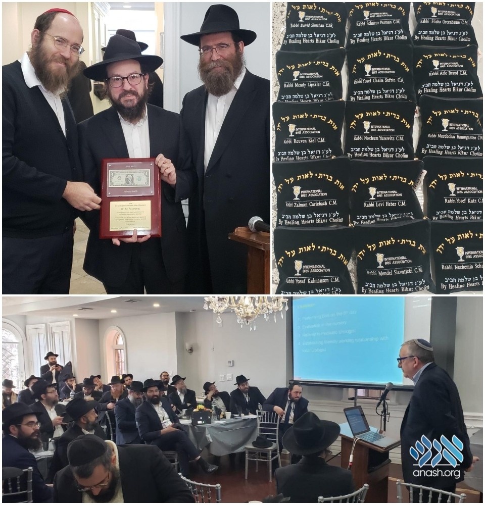 At the Kinus, Rabbi Yochanan Kline, a veteran Mohel and director of Healing Hearts Bikur Cholim FL, offered the mohelim present a pair of Tefillin for those committing to using it at their bris events.
