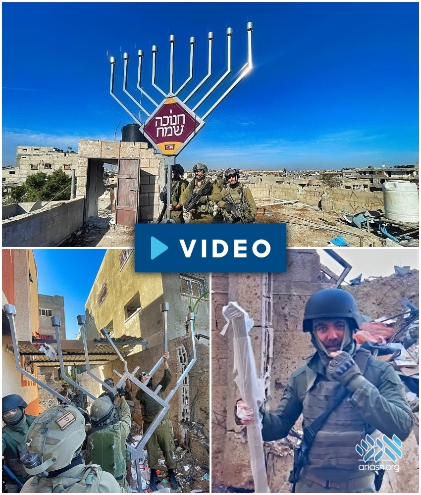 Lubavitcher soldiers in the IDF erected a large Menorah in the Beit Hanon neighborhood in the heart of the Gaza Strip, bringing a little bit of light to a place of terrible darkness.