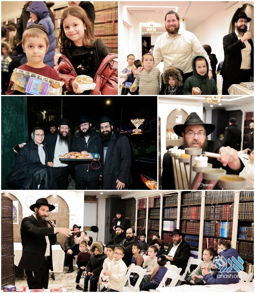 The Anshei Moshe community in Northern Crown Heights held a grand Chanuka bash on the fifth night with exciting entertainment and prizes for children of all ages.