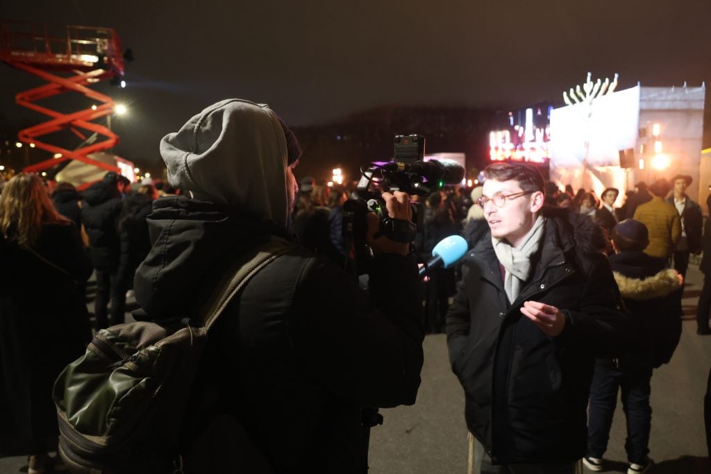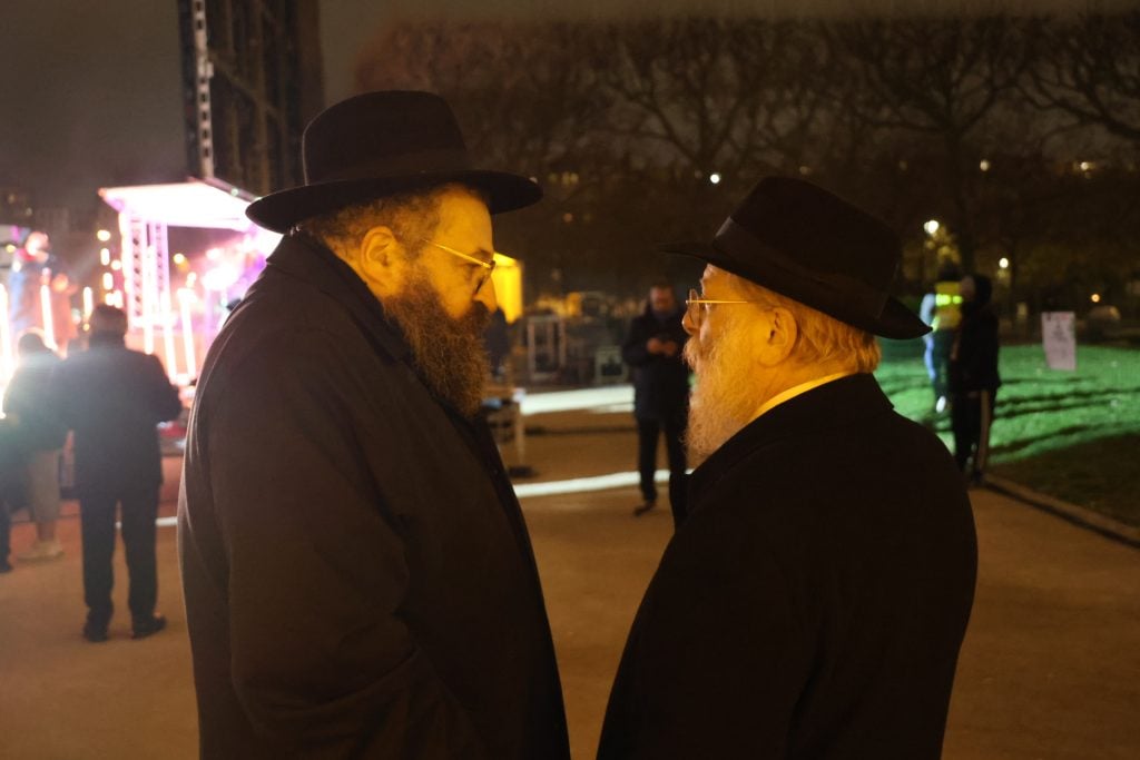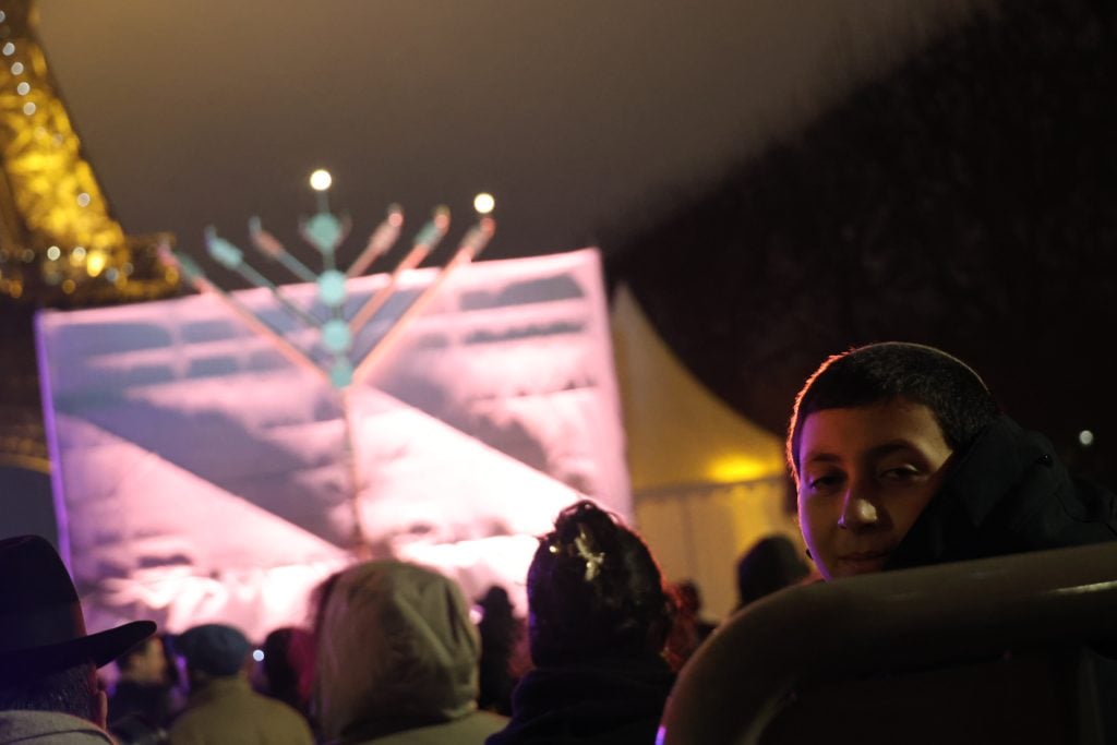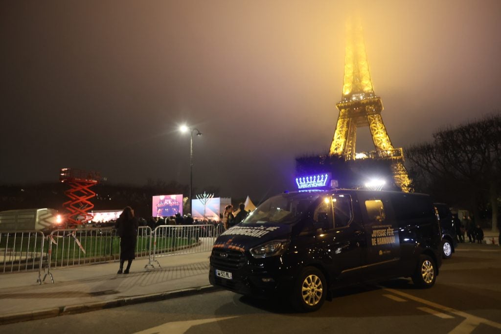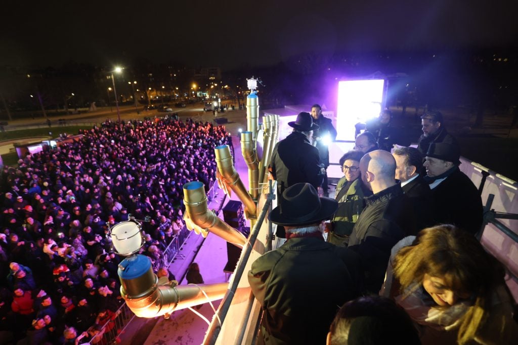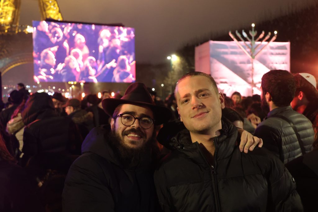 The lighting was broadcast live on the internet, reaching hundreds of thousands of Jews worldwide. Simultaneously, menorahs were lit at the Rebbe’s room at 770 Eastern Parkway in Brooklyn, and a large menorah was lit at the Eiffel Tower in Paris, under the leadership of shliach Rabbi Mendel Azimov.