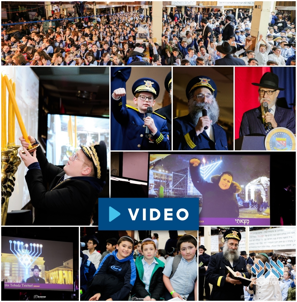 Hundreds of children gathered in 770 on Wednesday for a grand Chanukah rally, which connected with shluchim and children around the world. It concluded with the lighting of the iconic menorah.