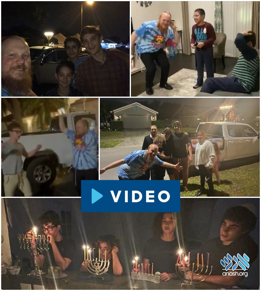 Carrying trays of fresh donuts and boxes of Menorahs, wearing the Camp T-shirt, and pulling a portable party speaker blasting the Ckids Gan Israel theme, the Plotkins brought true Chanukah joy to homes all over Florida.