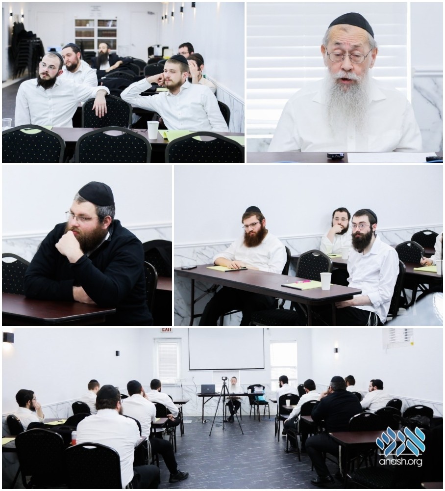 Last week, the second cycle concluded. It took place in Lemaan Yilmedu’s learning center in Crown Heights and was spread out over four, packed days in the course of which the chassanim learned the halachos of Taharas Hamishpacha from Rabbi Avrohom Hirsh Levin. They attended lectures on a variety of subjects including a lecture given by Rabbi Sholom Ber Chaiken on Hilchos Nidda, How to ask a Shalah given by Rabbi Tuvia Kasimov, the halachos of chuppah v’kidushin by Rabbi Mordchai Farkash and lectures from professionals in their fields on medical matters, emotional health and the proper way to run one’s home finances.