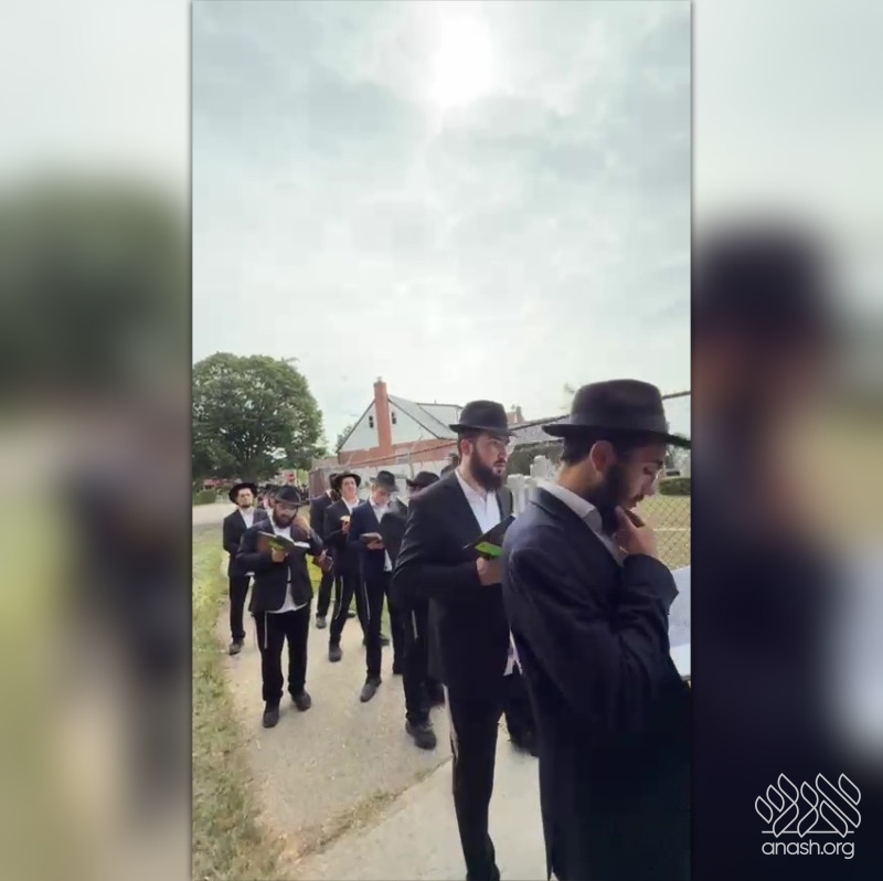 Ahead of Rosh Hashana, thousands of chassidim headed to the Ohel where they lined up to give their pidyon nefesh to the Rebbe. Here is the line at 1:10 pm today.