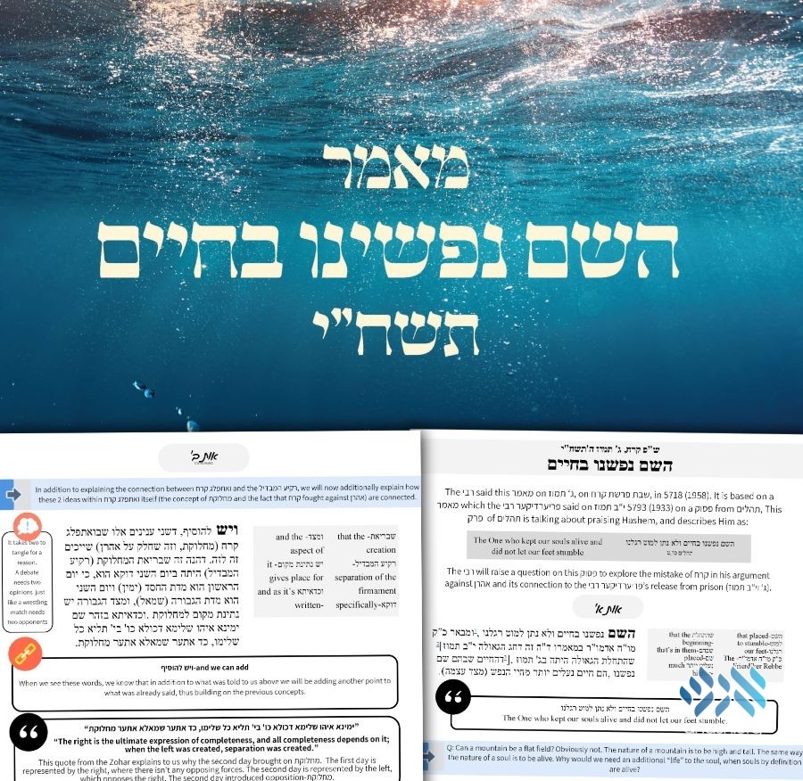 In this publication, rather than a mere translation of the maamer, you will discover tools designed to empower you with the skills to be able to interact with the words of the Rebbe itself. These tools include a word bank for challenging terms, guidance on paragraph transitions, thought-provoking questions, and more. They equip learners at any level to engage directly with the Rebbe’s words, unfiltered.