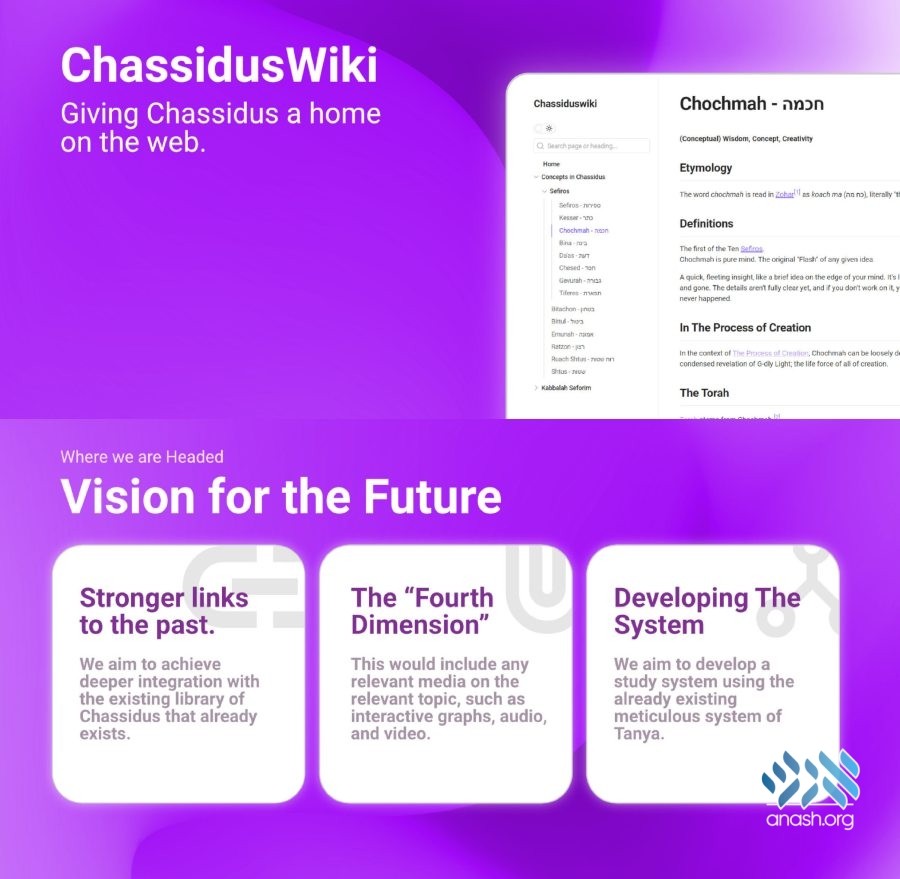 This project can be described as a Wikipedia of Chassidus of some sort, in the sense that it could be updated whenever necessary, and that it could link to any resource online that could contribute to the article under study, whether in text, audio or video.
