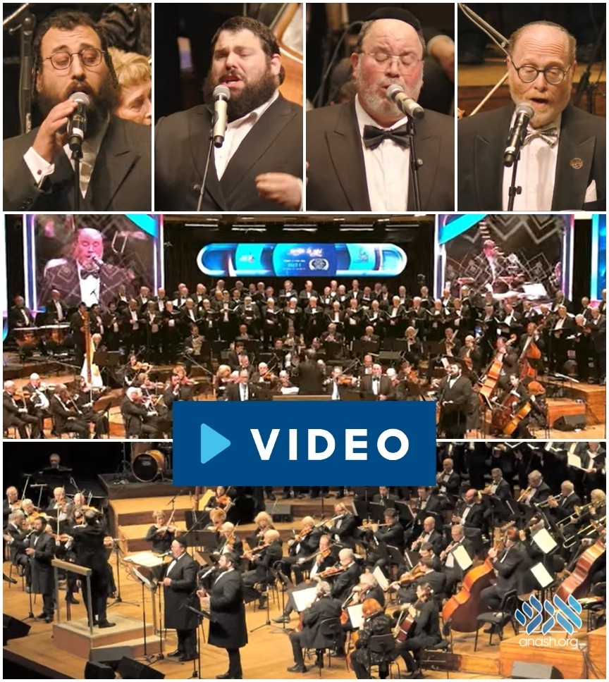 Famous chazzanim Aryeh Leib Hurwitz, Yaakov Motzen, Avremi Roth, and Yisrael Nachman Turgeman joined the Raanana Symphony Orchestra to perform a dramatic medley of Chabad Niggunim.