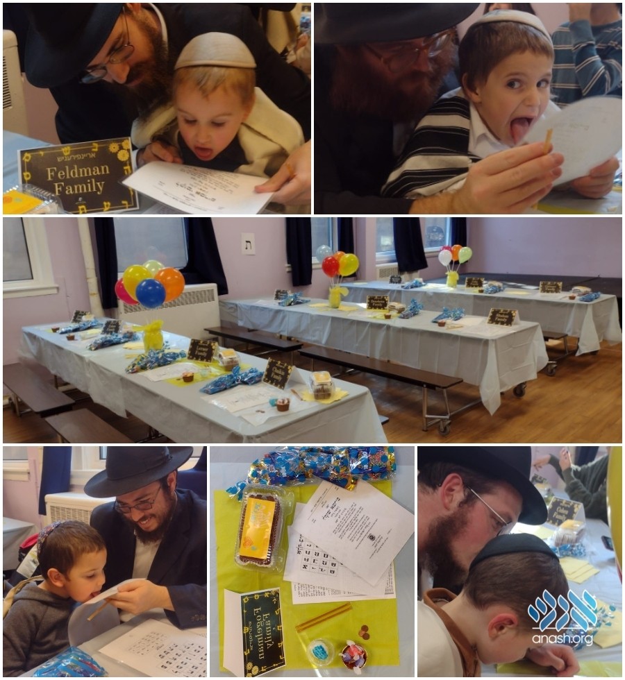 Many families in the school, and Anash at large, took advantage of the special day to introduce their young sons to the sweetness of learning Torah. Led by Rabbi Dovid Leib Wilansky, the kindergan rebbi, whose father did the same for countless young boys in Montreal, each father read the Alef Beis with his son.