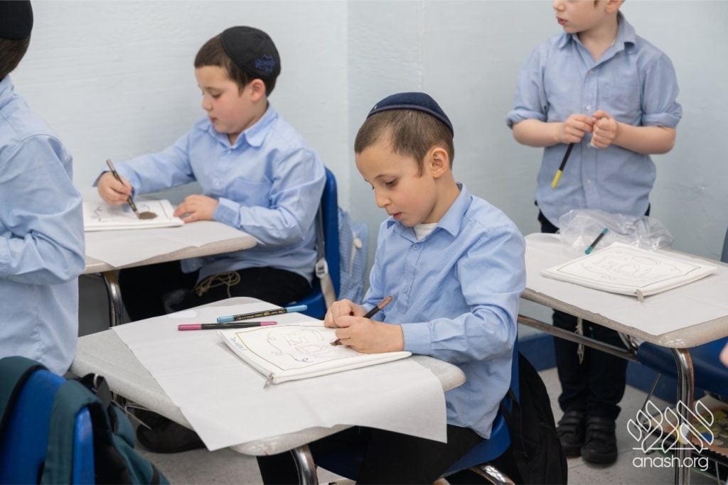 Adding to the excitement, the Oholei Torah Mothers Committee joined the classes for a hands-on Pesach activity, where talmidim decorated their own matzah bags. The project combined creativity with meaning, giving each child a personal keepsake to enhance their Yom Tov experience at home.