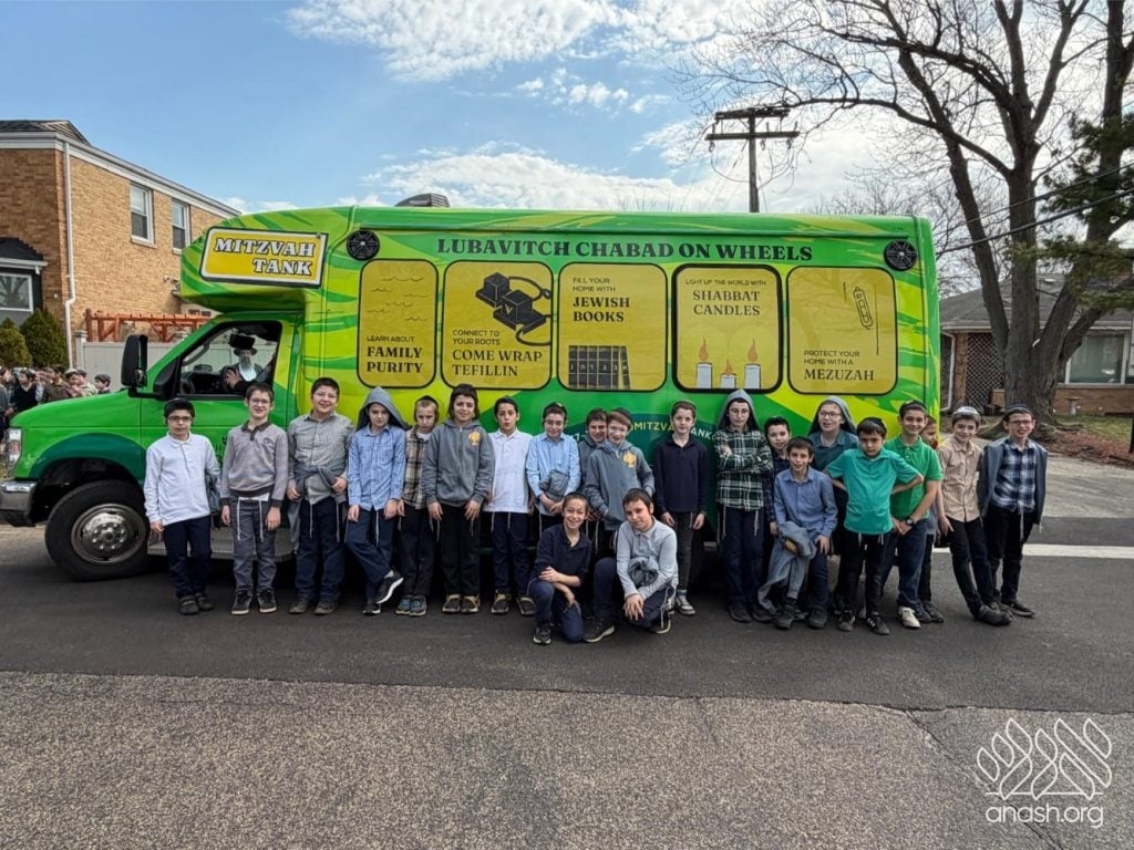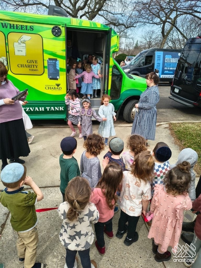 Students of Cheder Lubavitch and local bochurim filled eight Mitzvah Tanks, in a project of Lubavitch Chabad of Illinois to bring mitzvos to communities across Chicagoland.