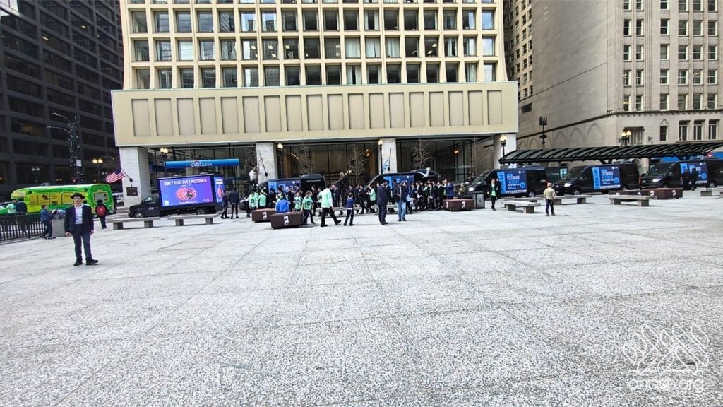 The parade began at Cheder Lubavitch Hebrew Day School in Skokie, where the students joined a special rally and Mitzvah Tank send-off. From there, the tanks—led by Chicago’s new Mitzvah Tank—made their way to the Daley Center, where the bochurim broke out in lively, spontaneous dancing before spreading out across Chicago.