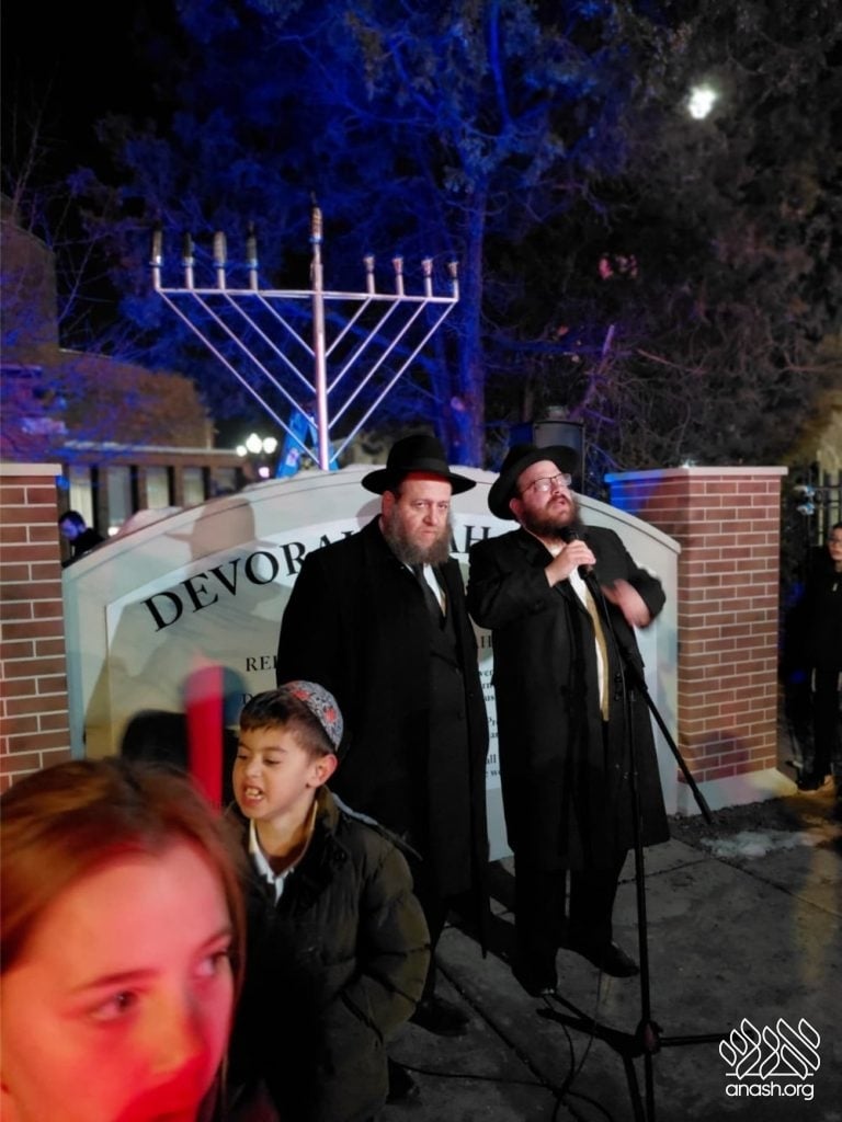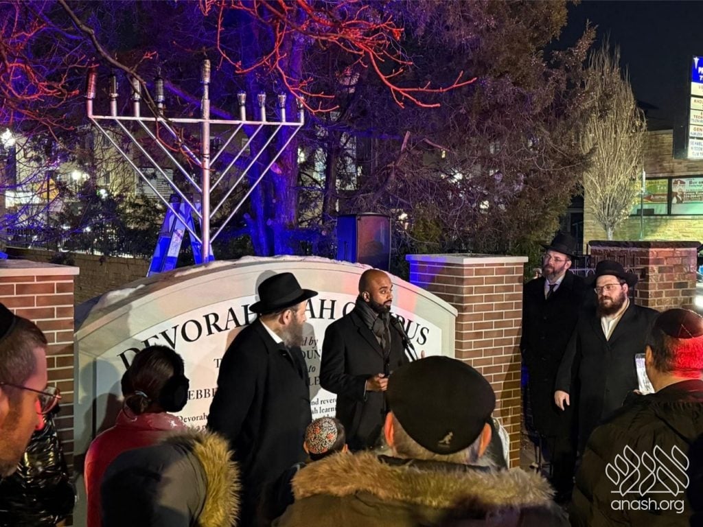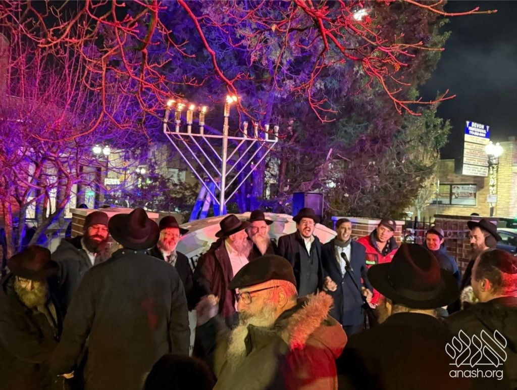 In a show of solidarity, the Chicago Rabbinical Council and Agudath Israel reached out and asked to join the Chabad community for the yearly Community Menorah Lighting at the Bnei Ruven shul.