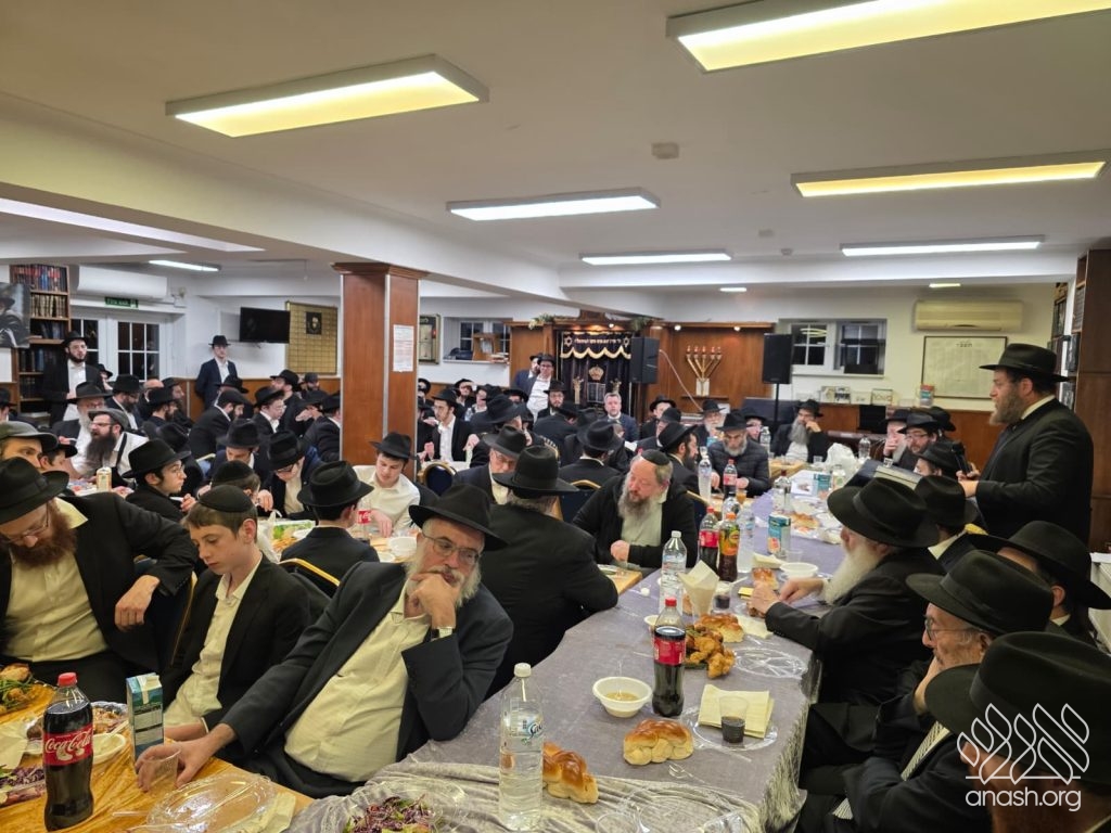 Yeshiva Gedola of London, led by the Talmidim hashluchim, marked the joyous Yom Tov on Thursday night with a beautiful farbrengen and program.
