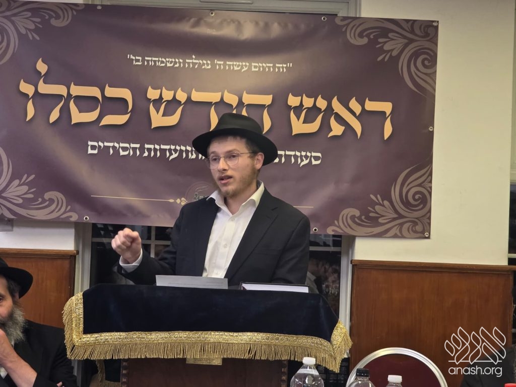 Next up was one of the Talmidim haShluchim, Mendel Kievman, who spoke about the meaning and relevance of Rosh Chodesh Kislev to bochurim in this day and age.