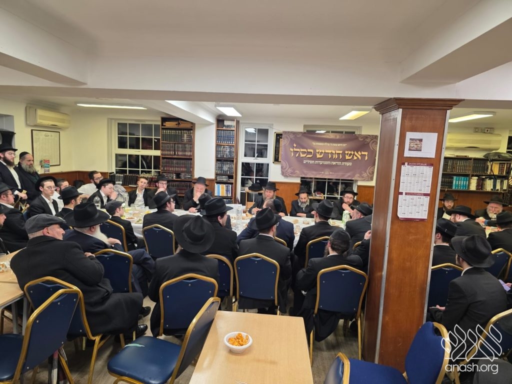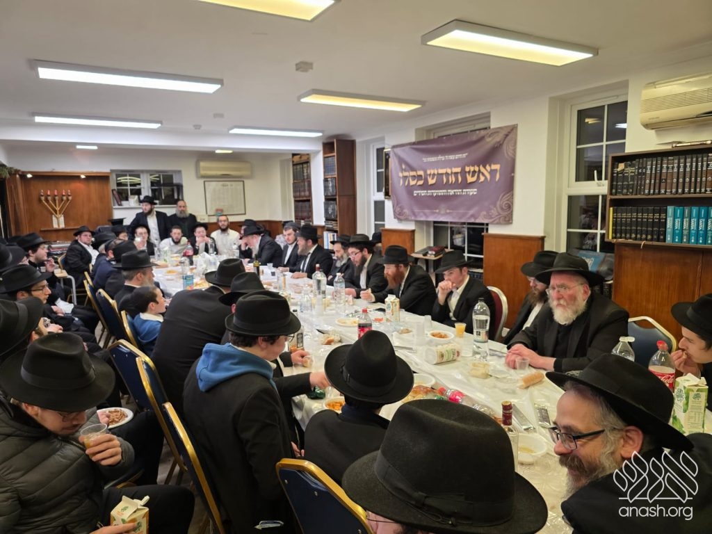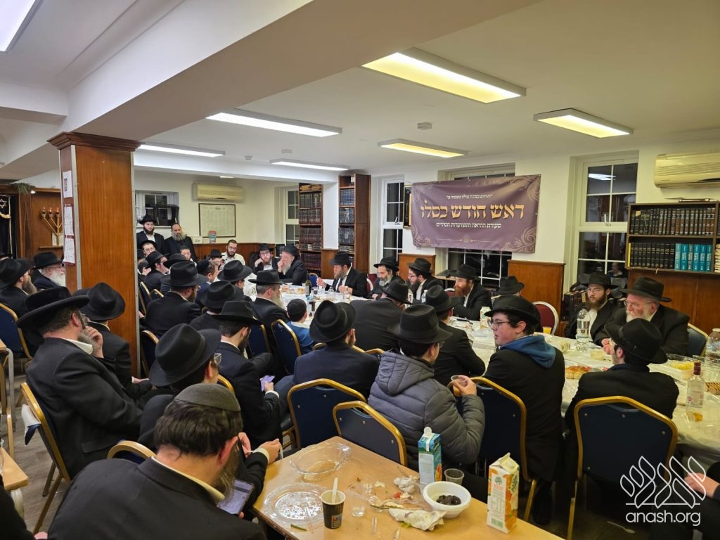 The Yeshiva Gedola of London drew a full crowd for a lively Rosh Chodesh Kislev farbrengen featuring Chicago’s Rabbi Boruch Hertz and a live Zoom address from Dr. Ira Weiss, the Rebbe’s cardiologist, as well as Rabbi Yitzchak Sufrin, Rabbi Levi Sudak, and Rabbi Mendel Gordon.