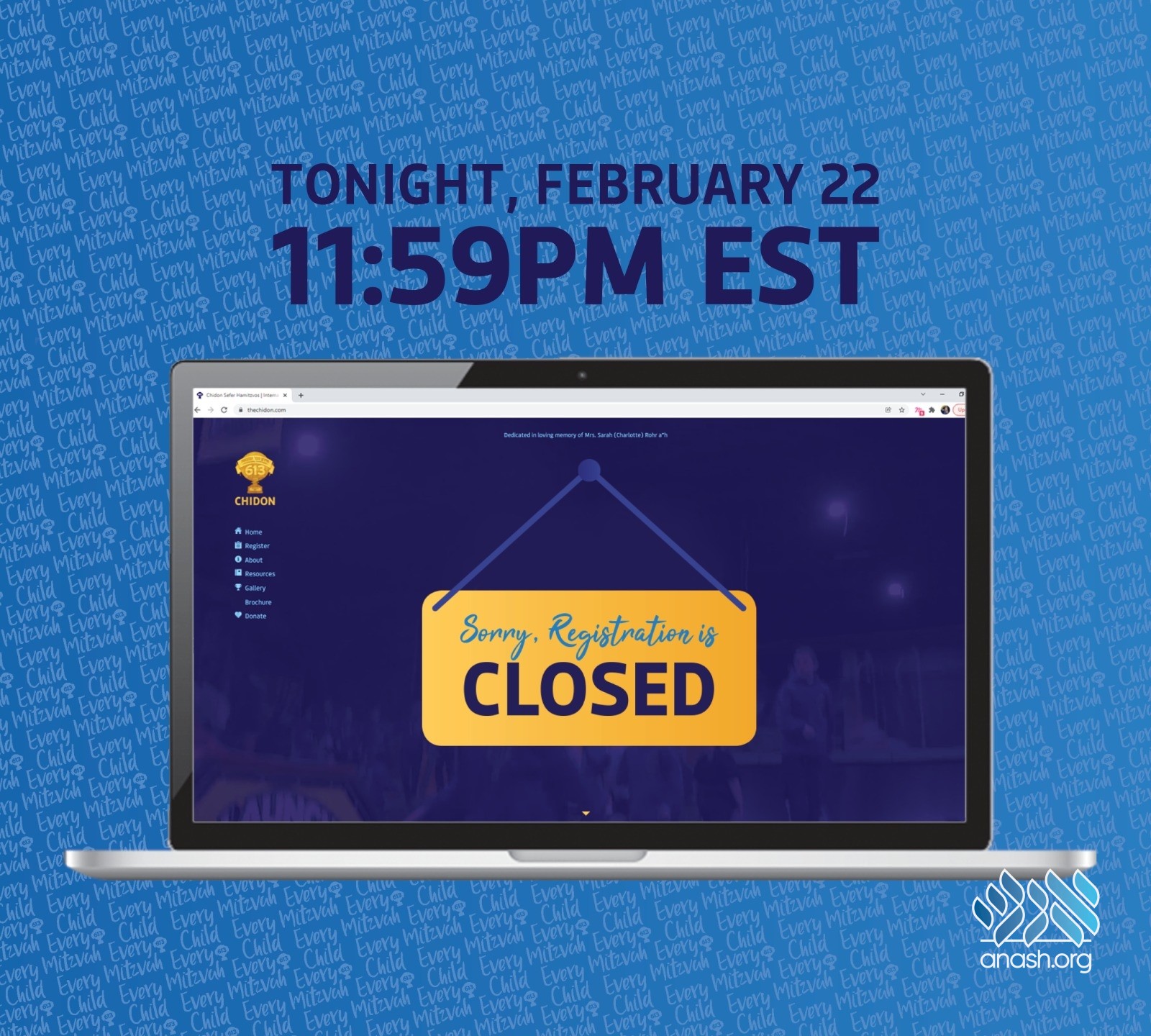 Chidon staff explain why after 11:59pm tonight there will be a sign saying sorry we are closed on the website, and no exceptions will be made.