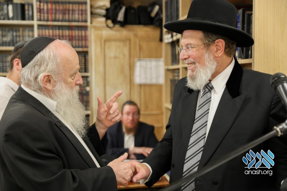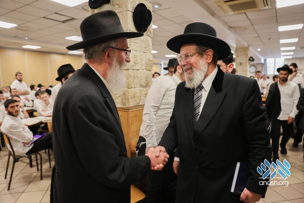 In appreciation, the talmidim presented the Chief Rabbi with collections of their pilpulim, while the Rosh Yeshiva, Rabbi Kalmenson, gifted him volumes of his seforim Mei Tal, which have earned a place of honor in the batei medrash of many yeshivos.