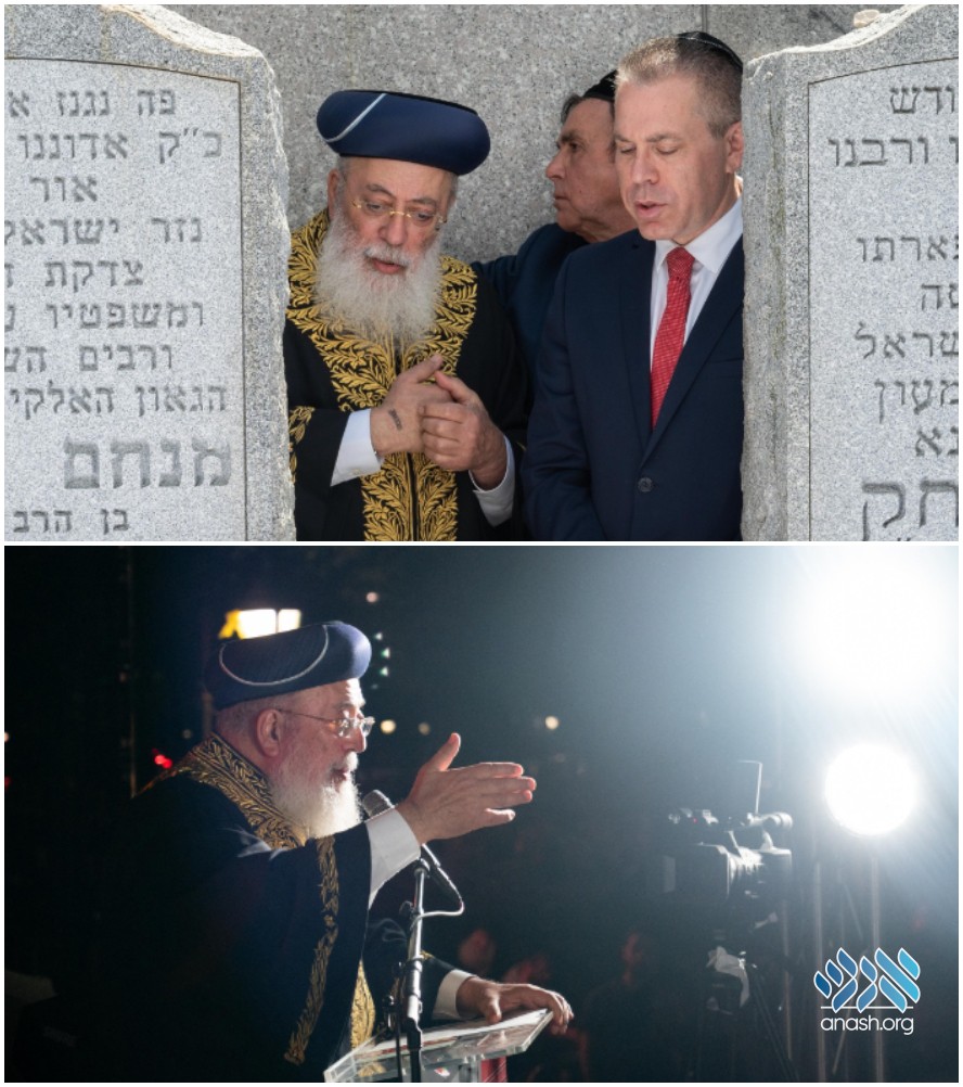 They met at the Ohel, where Chief Rabbi Amar blessed Ambassador Erdan with much strength and success as he represents the Jewish state at the United Nations, and the United States. They were accompanied by Rabbi Yosef Carlebach, and Rabbi Mendy Carlebach who coordinated the meeting. The group joined more than twenty-five thousand people that came to commemorate Gimmel Tammuz.