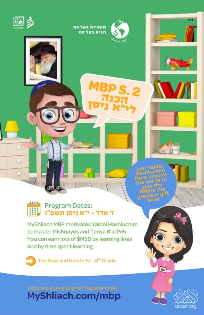 For more info and to register, visit myshliach.com/mbp or email [email protected] for more info.