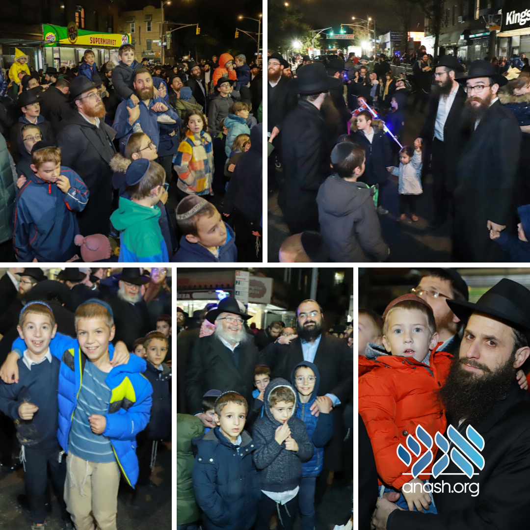 Hundreds of children danced in the street of Crown Heights for their very own Simchas Beis Hashoeva on Thursday night.