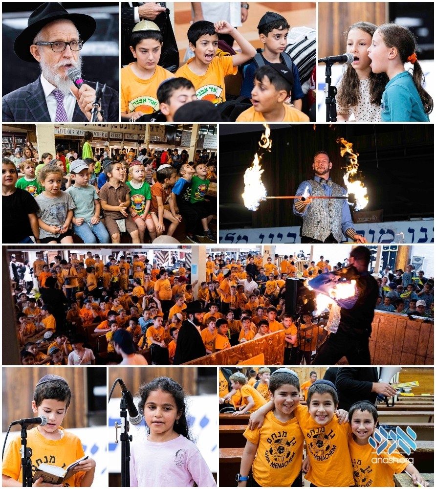 Boys and girls from Crown Heights and Queen day camps gathered in 770 for a rally marking the 15 Av and the yahrzeit of Rabbi JJ Hecht, who used to organize the children’s rallies with the Rebbe, and whose sons continue the tradition.