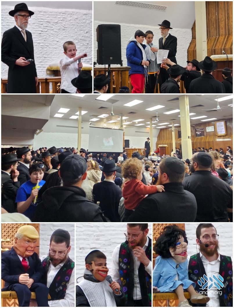 Hundreds of children and parents filled 770 on the second day of Chol Hamoed for a Tzivos Hashem rally featuring the 12 pesukim, Tehillim, words of Torah, and an exciting ventriloquist show by “The Shleikes.”