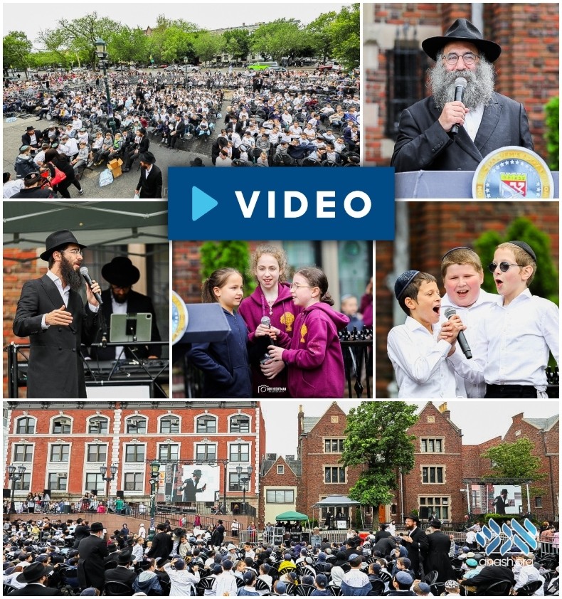 The rally was led by Rabbi Shimmy Weinbaum, director of Chayolei Tzivos Hashem, and was accompanied by music by Choni Milecki and Eli Marcus.