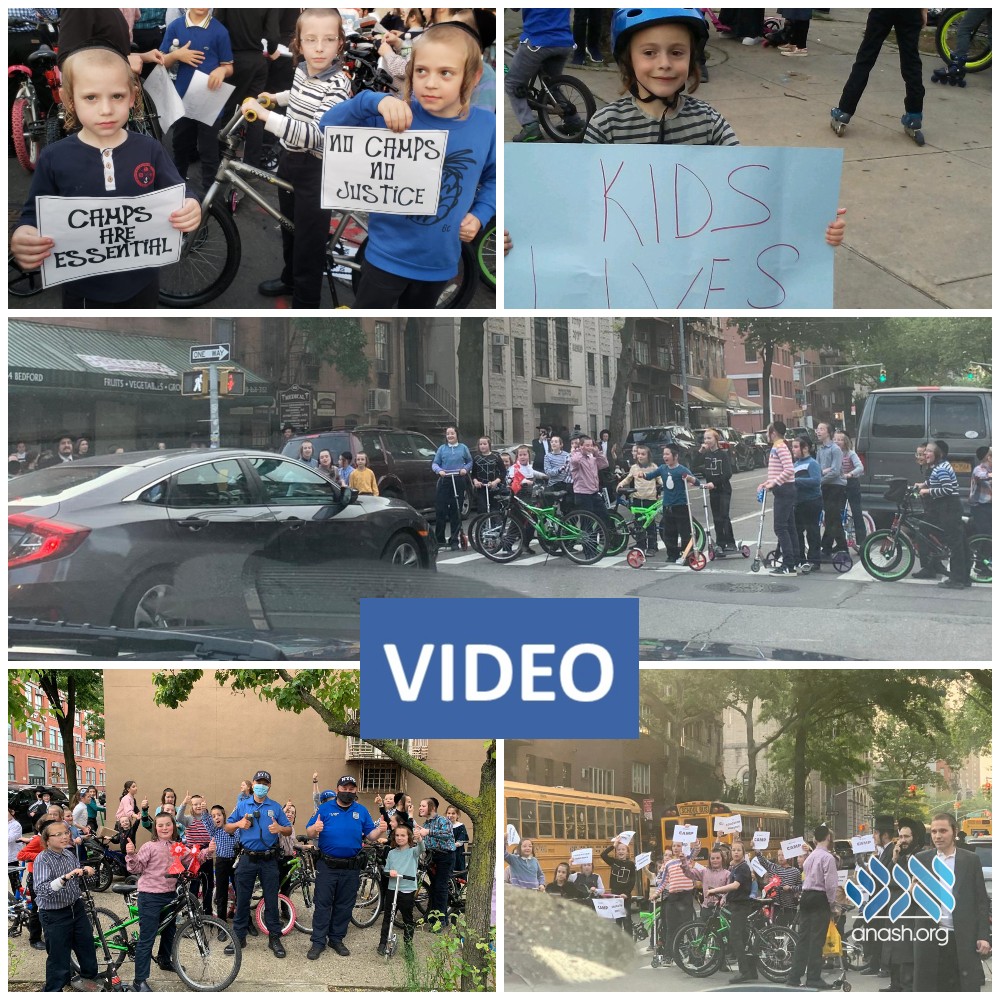 Hundreds of young Jewish children took over the streets of Williamsburg and Boro Park, calling on Andrew Cuomo and Bill de Blasio to open sleepaway camps and parks.