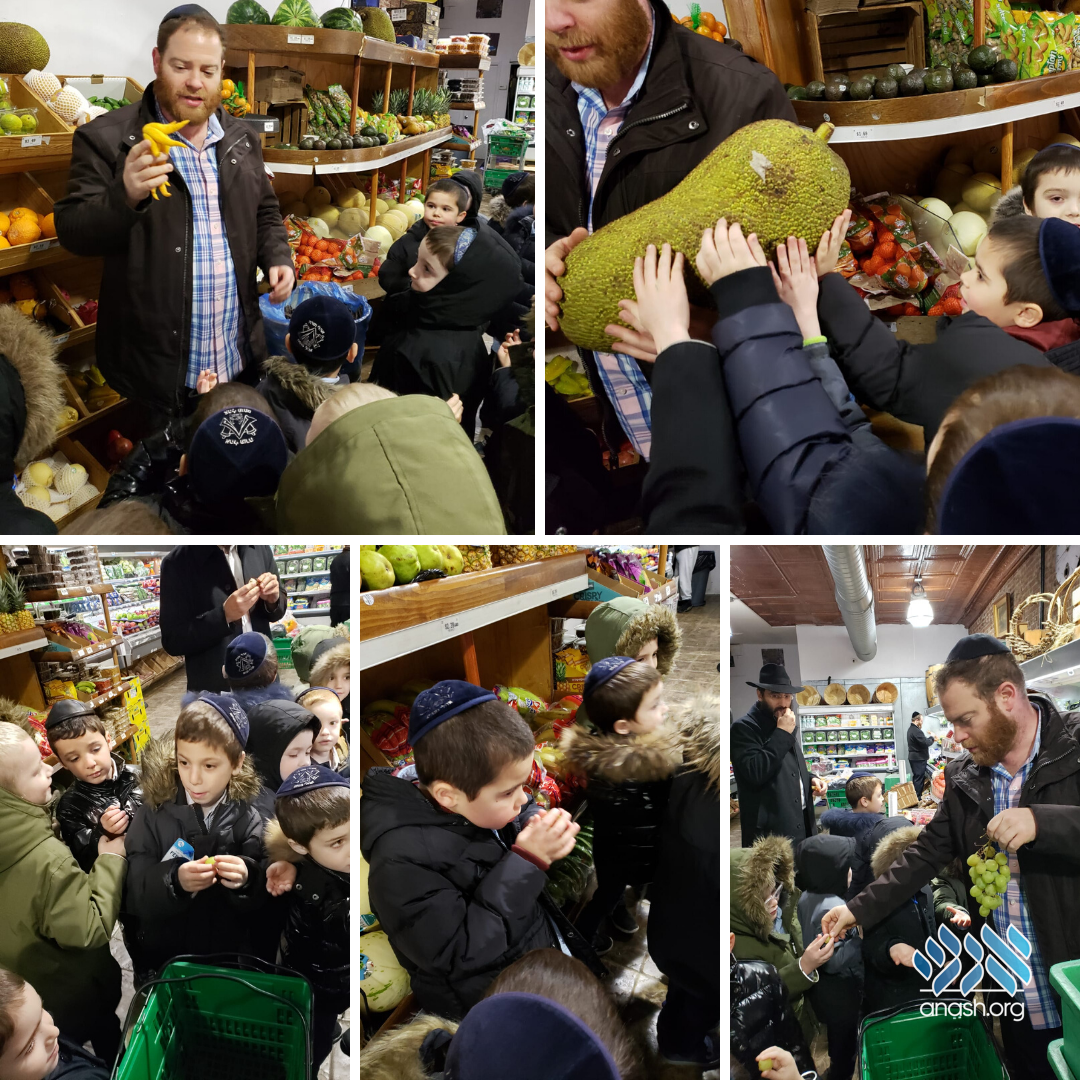 Students from Oholei Torah Pre-1A accompanied Rabbi Mendy Barnett and Rabbi Shmulie Stone to Mr. Green’s produce market Thursday. The trip was made in honor of the 15th of Shvat, the day that marks the ‘new year’ for trees.