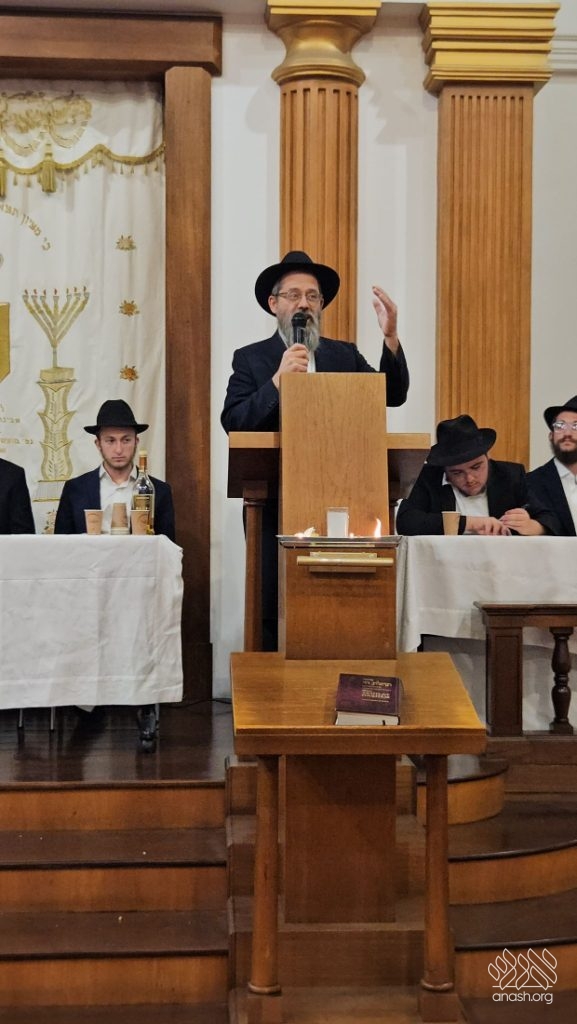 This was followed by a special phone address from Harav Menashe Perman, head shliach to Chile, who expressed heartfelt joy at this long-awaited milestone. He encouraged the talmidei hashluchim to see themselves as pioneers carrying out the Rebbe’s vision, building a strong foundation of Torah and Chassidus in Chile.