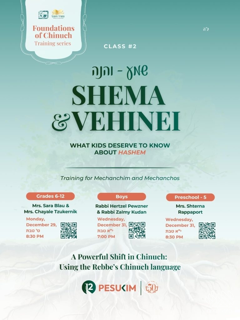 Now, Merkos’s Chinuch Office is bringing the next chapter, unlocking the Rebbe’s chinuch language through the Pesukim of Shema and Vehinei.