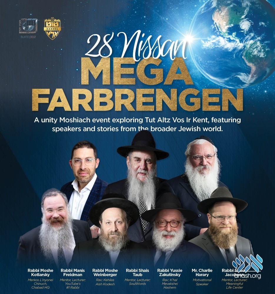 Ahead of 28 Nissan, the Moshiach Office has unveiled plans for a grand unity farbrengen to be held in Crown Heights on 28 Nissan, 19 April, billed as The Unity Mega Moshiach Event. Uniting speakers from many segments of the Jewish community, the evening of Moshiach inspiration aims to highlight how the shared hope of Moshiach serves as a unifying force across the spectrum of contemporary Jewish communities.