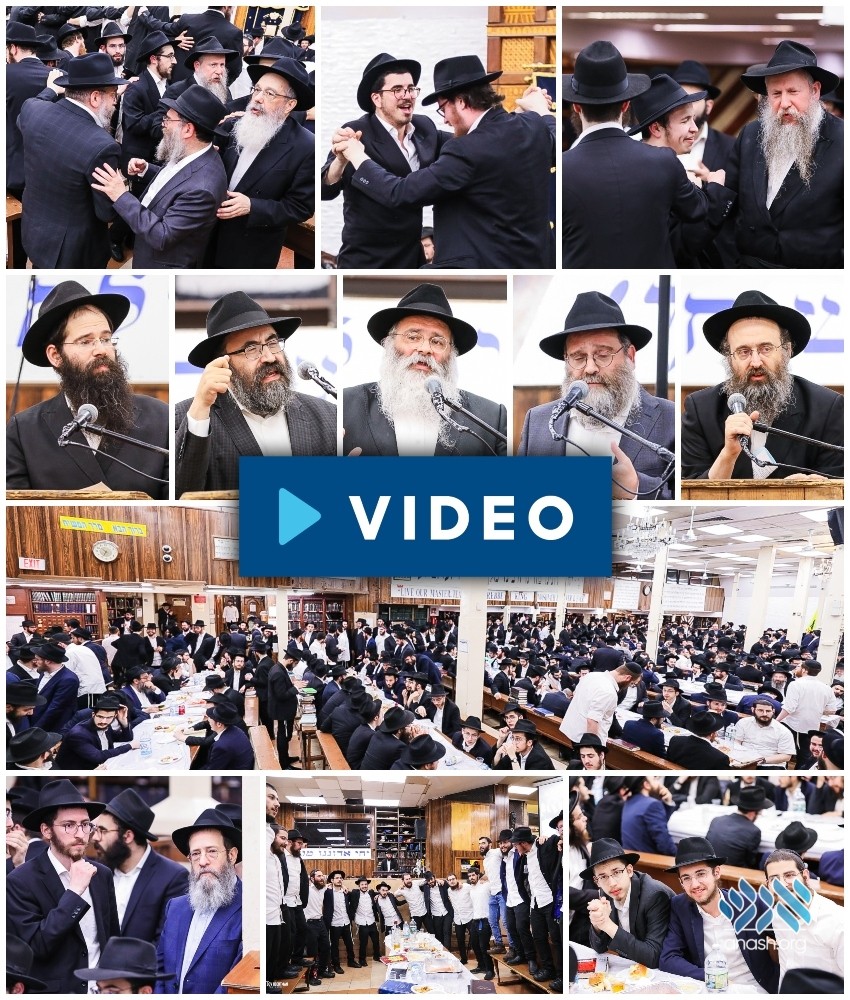 The farbrengen was addressed by Harav Yosef Yeshaya Braun, member of Crown Heights Beis Din, Rabbi Mendy Cohen, shliach to Sacramento, CA, Rabbi Kalman Weinfeld, rov of Beis Eliezer Yitzchok, and Reb Berel Junik. The MC was Rabbi Sholom Schapiro.