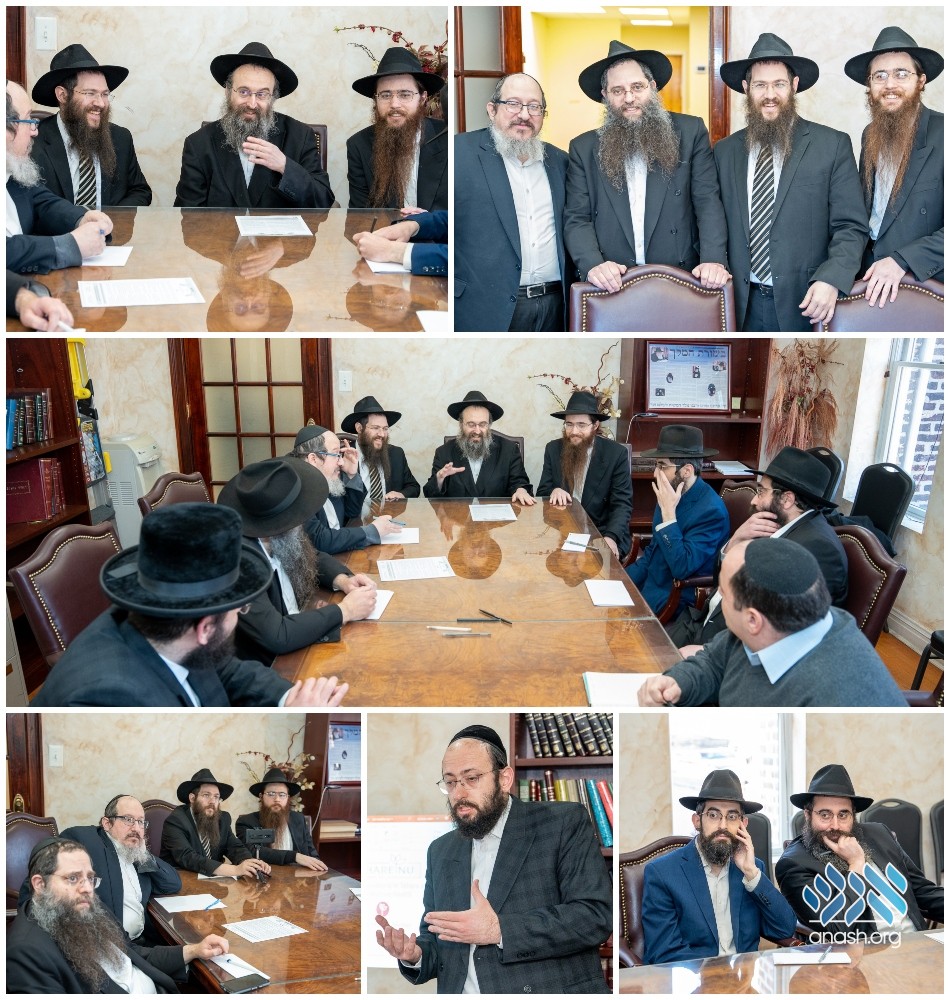 The meeting took place in the office of the Crown Heights Beis Din and was attended by Rabbi Yosef Braun and some of the local veteran Chosson Teachers; Rabbi Pesach Schmerling, Rabbi Yisroel Fried, Rabbi Yehuda Leib Altein and Rabbi Chaim Yisroel Wilhelm.