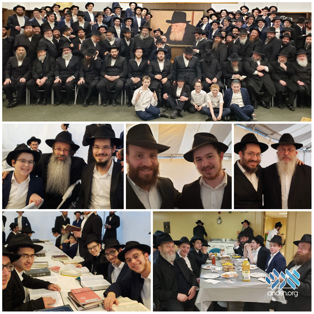 Per yeshiva tradition, the temimim, their fathers, and anash farbrenged together at length after the seudah, completing the evening’s program. The seudah was also the Sholom Zachar for the newborn son of Rabbi and Mrs. Levi fuss, Mashpia in Yeshiva.