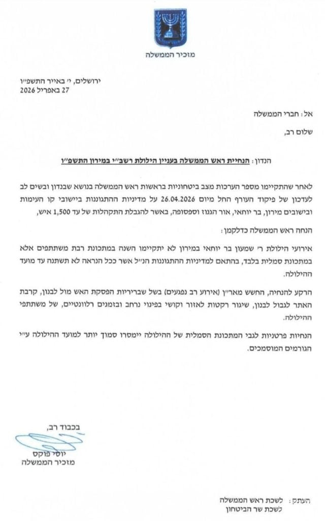 Amid concerns over the ceasefire with Lebanon and the site’s proximity to the border with Hezbollah strongholds, Prime Minister Benyamin Netanyahu ordered the cancellation of this year’s large-scale Lag BaOmer celebrations at Meron.