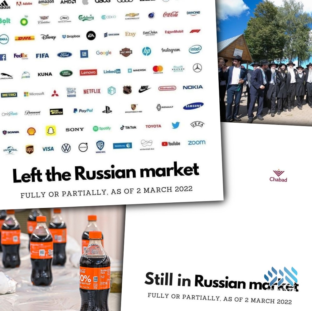 As more and more companies announced their exit, a humorous post went viral, contrasting a list of those “left the Russian market fully or partially”, showing a large number of logos, to a list of those “still in the Russian market”, showing one solitary logo…Chabad.