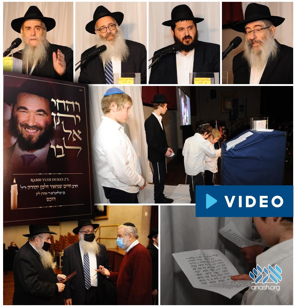 Emceeing the event was Rabbi Mendy Kotlarsky, director of Merkos 302, and close friend of Yudi and the Dukes family. The evening began with Tehillim led by Yisroel Dukes and birchas kohanim led by Mr. David Schottenstein.