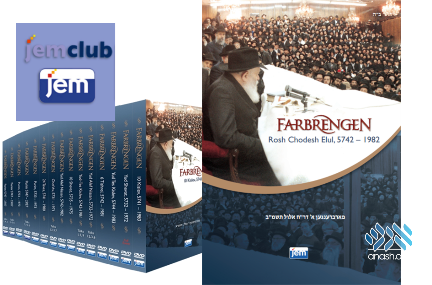 A new farbrengen from Rosh Chodesh Elul 5742 (1982), with all sichos fully subtitled in English, Hebrew and Yiddish, has recently been produced by JEM.