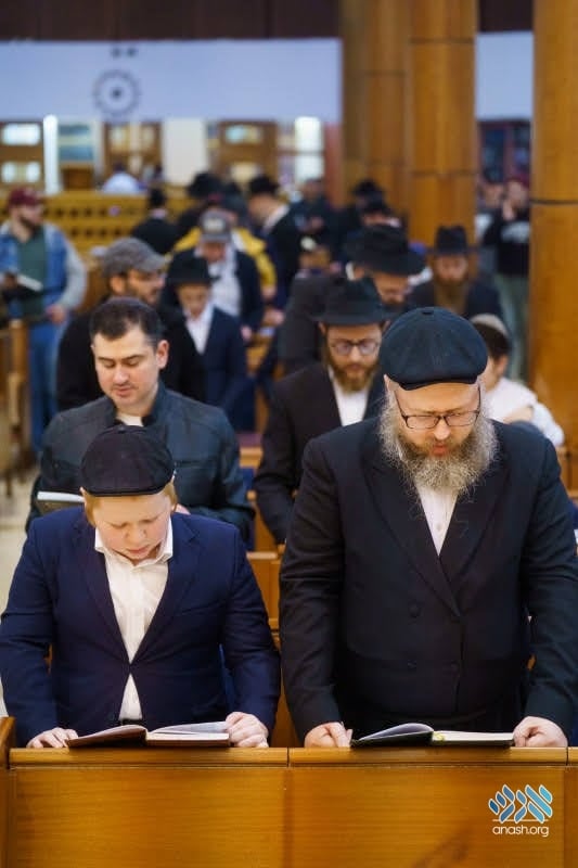 For those unable to make the long trip to the United States, a “Shabbos Selichos” was arranged in the town of Lubavitch, about five hours’ drive from Moscow. This year, around 200 mispallelim arrived in bus convoys and private cars, receiving full hospitality. Rabbi Gavriel Gordon, together with a devoted team, placed the many guests in the newly constructed guest facilities. The shiurim, seudos, and farbrengens took place in the beautifully restored zal, the rebuilt premises of the famed Yeshivas Tomchei Tmimim in the Lubavitch chotzer. The tefillos, and especially the first Selichos, were recited with great emotion. Serving as chazzan was Rabbi Zalman Shimon Deren of Moscow, secretary of the Chief Rabbinate of Russia, alongside the rov of nearby Smolensk, Rabbi Levi Yitzchok Mondshine.