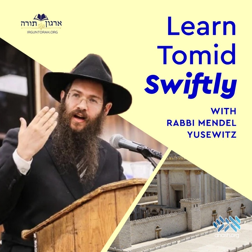As per the directives of the Rebbe to learn the laws pertaining to the Beis Hamikdash Irgun Torah is offering a daily Swift Shiur in Maseches Tomid.