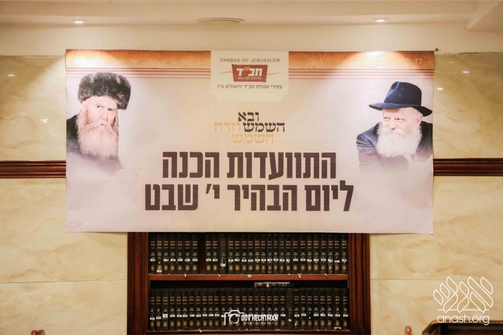 Hundreds of Chassidim and members of the wider community in Yerushalayim gathered last week for a central Chassidic farbrengen, in preparation for Yud Shevat, marking the 75th anniversary of the Rebbe foramlly accepting the nesius.