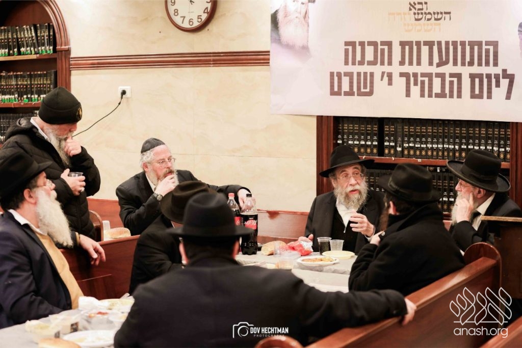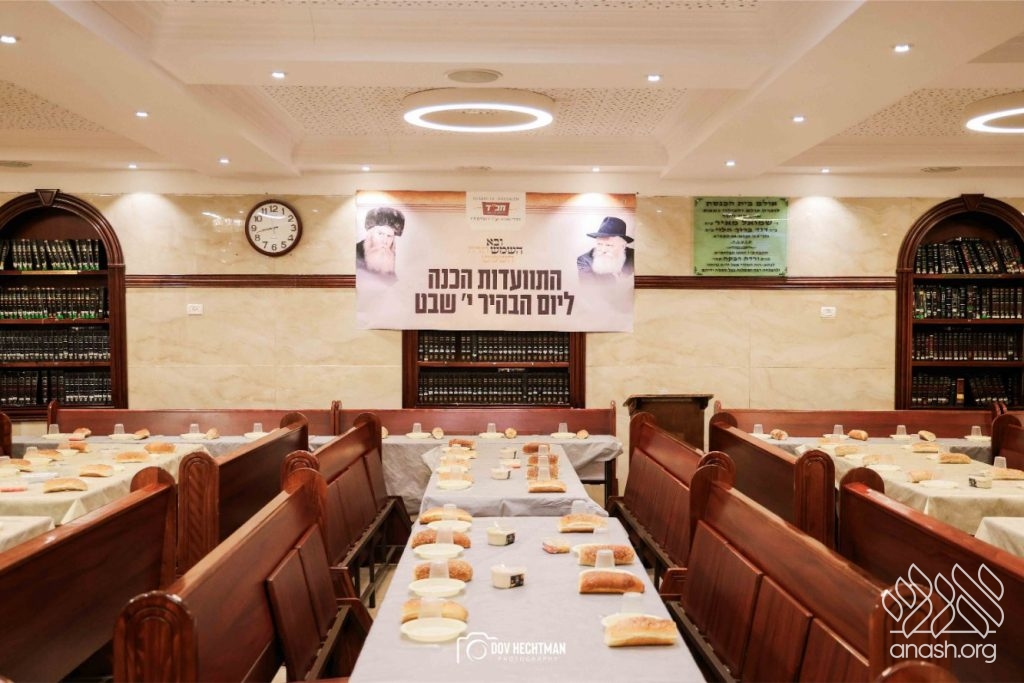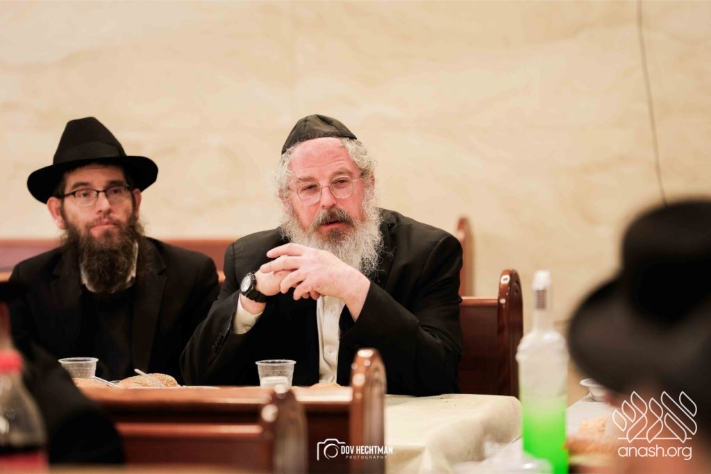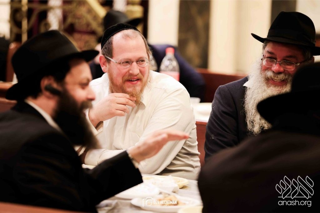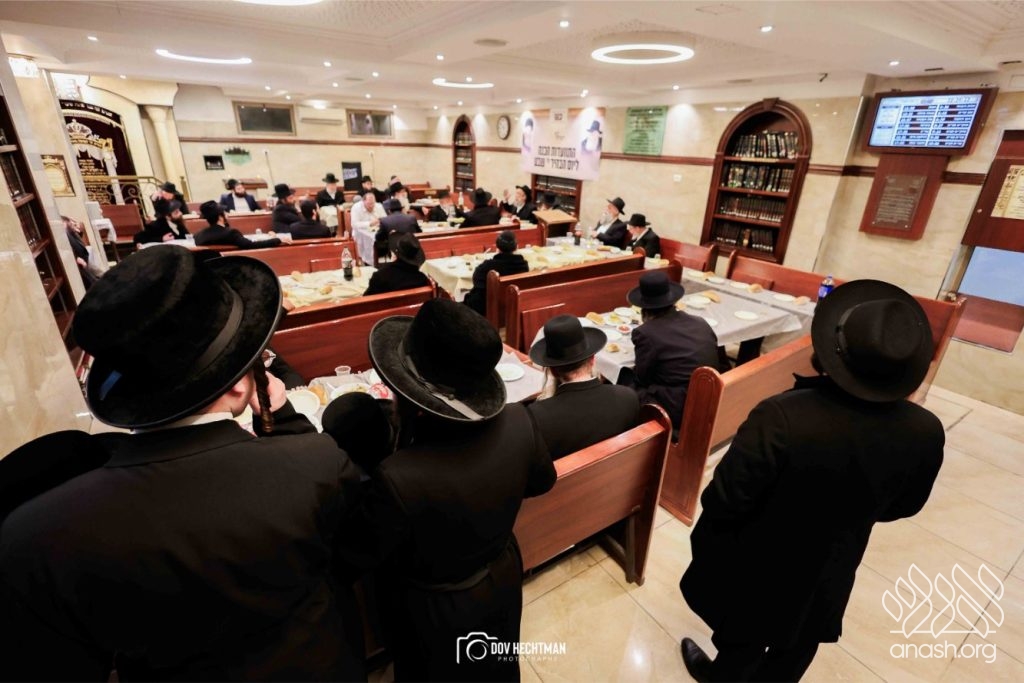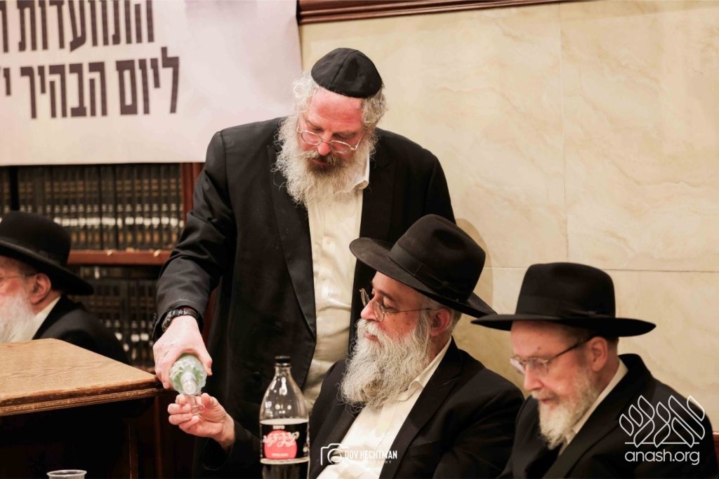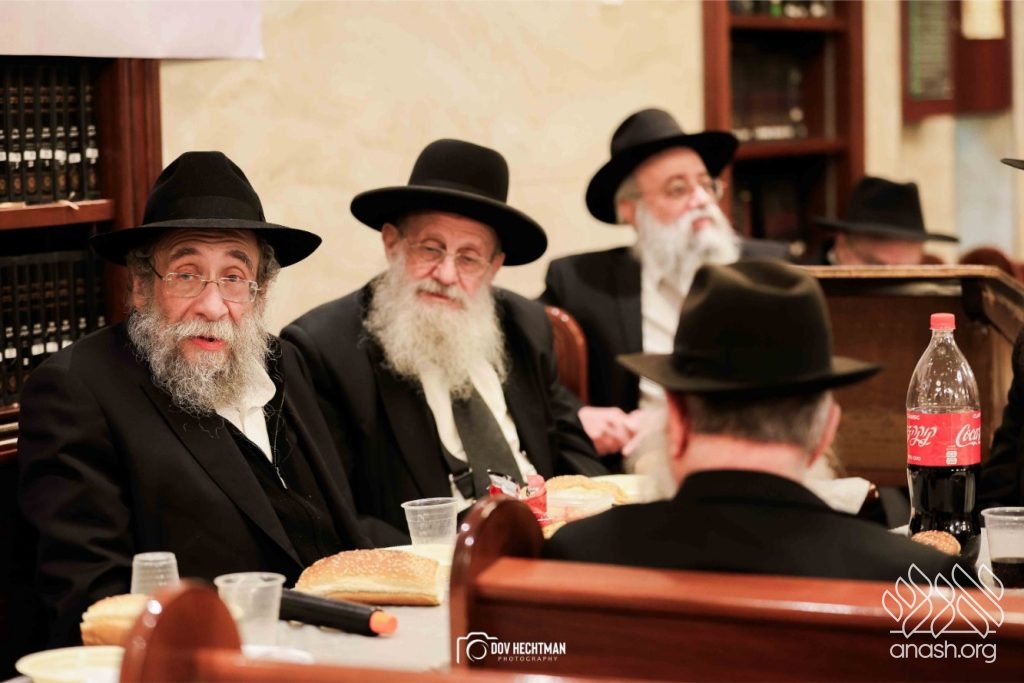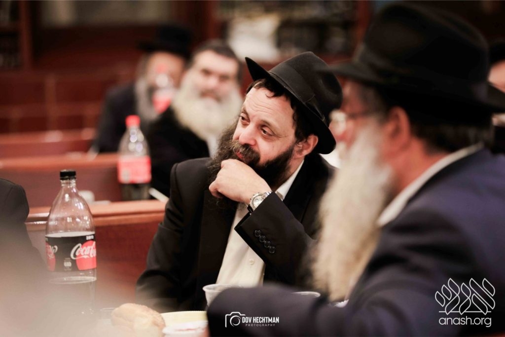 The grand farbrengen took place in an uplifting atmosphere, with participants singing niggunim and engaging in heartfelt words of inspiration that continued late into the night.